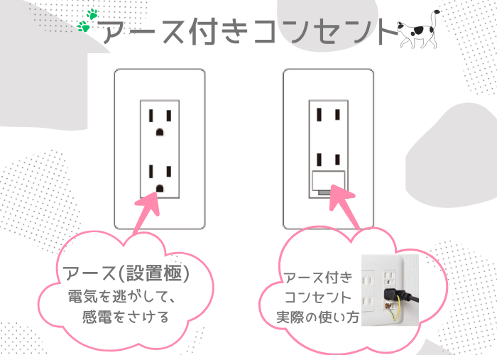 - アース付きコンセントに交換する
